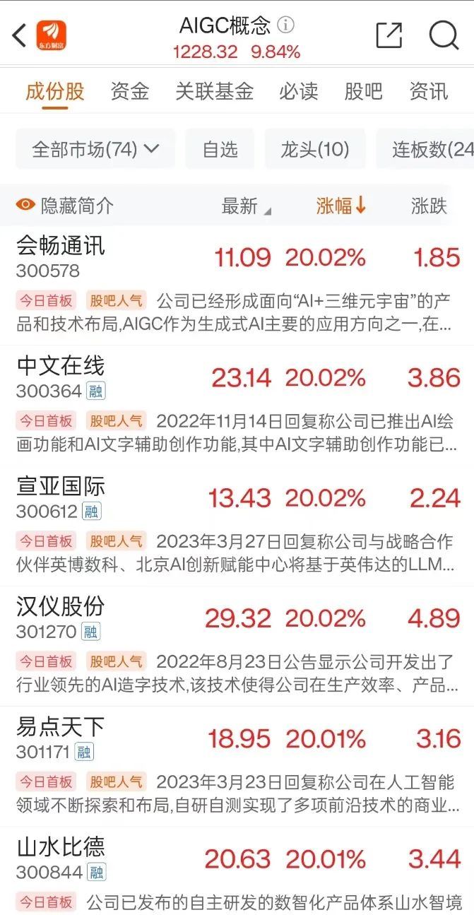 Sora的横空出世使AIGC概念板块全线飘红,包括当虹科技、万兴科技、因赛集团在内的多家涉及文生视频业务的上市公司股价集体20CM涨停。