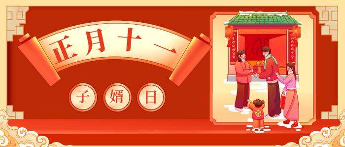 正月十一是“子婿日”,是岳父宴请女婿的日子。“子婿日”是很有历史渊源的,在古代,正月初九庆祝“天公”生日剩下的食物还没有吃完,因此会利用这些祭祀过神灵的美食来招待女儿和女婿,作为初二女儿回门时的一个答礼。而正月十一这天,女儿女婿回娘家必须由娘家的哥哥或者弟弟提前出门来迎接,以此表示娘家人对女婿的敬意和重视。