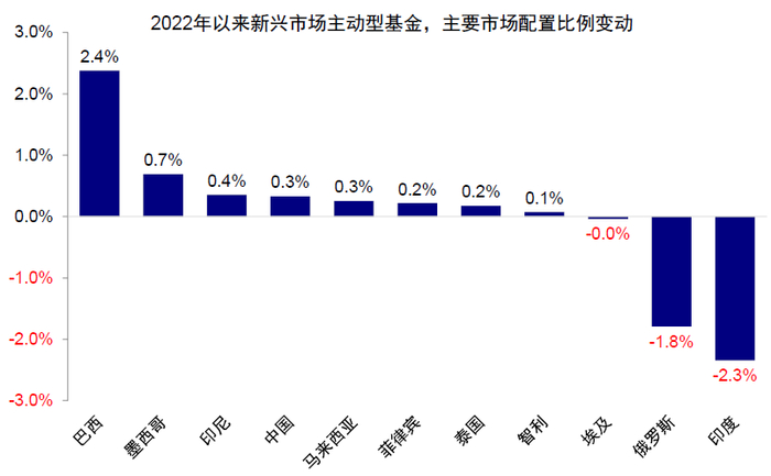 图表19:2022年以来,对中国小幅度增配,但印度相对减配较多