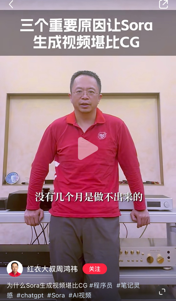 关于 Sora 的解析,我不是专家,诸位有兴趣可以看看周鸿祎的视频(红衣大叔周鸿祎),作为国内互联网老炮,很多解析值得一看。