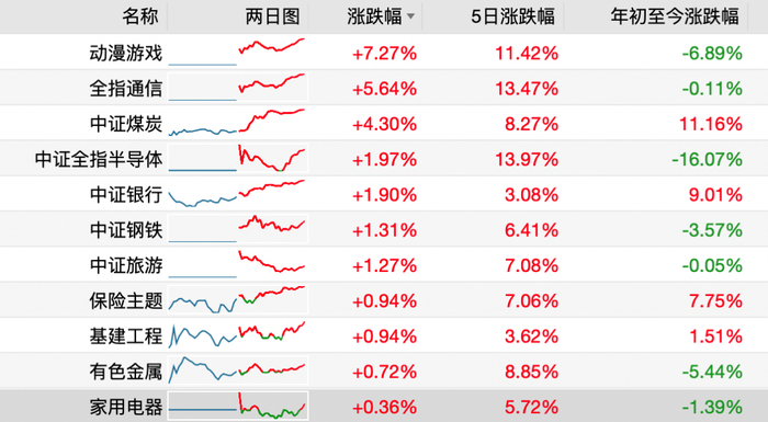 当然,在 TMT 板块之外,与宏观周期休戚相关的银行、煤炭、钢铁涨幅也是居前。煤炭 ETF(515220)大涨4.74%,今年迄今涨幅 11.76%,在风雨飘渺的 2024 年,竟然达成两位数涨幅,真不容易。