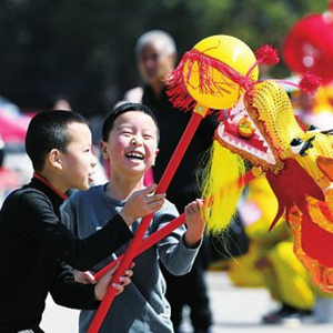 2月18日,贵州省黔东南苗族侗族自治州黄平县各乡镇群众身着盛装,欢聚一堂,举行舞龙、花灯、舞狮、巡游等传统民俗活动,祈盼新的一年风调雨顺、五谷丰登。图为小朋友参加龙灯会巡游表演。新华社