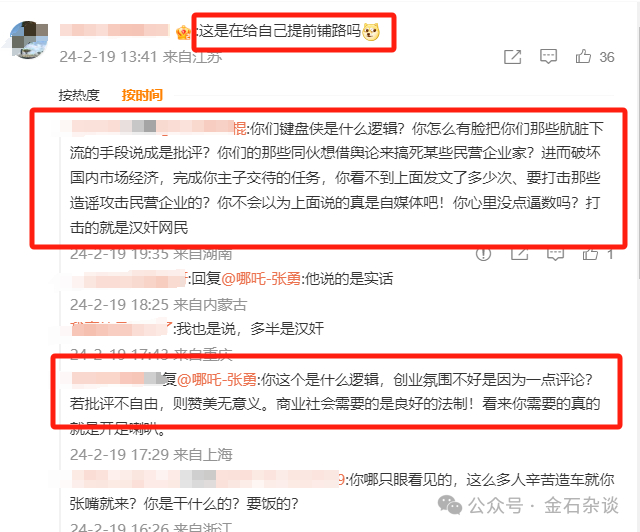 对此,网友的评论无论支持还是反对,笔者都认为有点偏激。居首的评论是,“这是在给自己提前铺路吗?”张勇则反击,“你这话是什么玩意!你这种人多了,创业氛围能好起来吗”。然后有人认为创业氛围不好是因为一点批评;还有人认为键盘侠怎么有脸将自己肮脏下流的手段美化为批评。