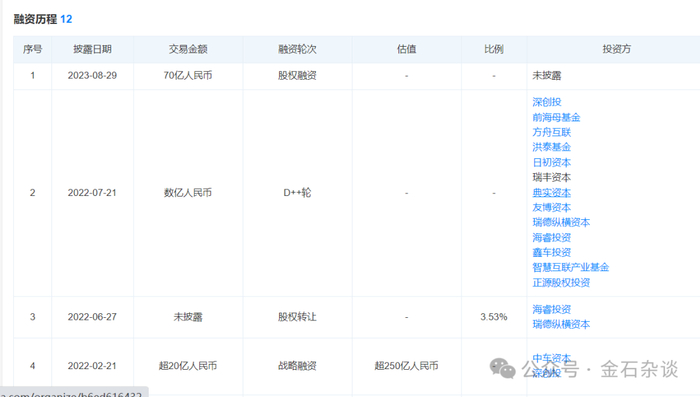 成立以来,哪吒汽车已经迎来了12轮融资,融资总额至少超过200亿,吸引了包括宁德时代、深创投、中车资本、合众新能源、建银国际、中信证券等明星资本。