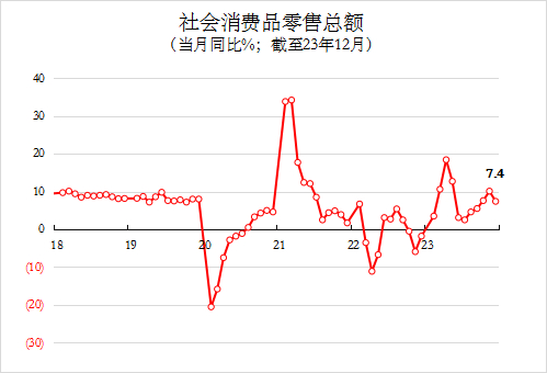 12月社会消费品零售总额同比+7.4%,增速环比回落2.7个百分点,联想到2022年12月,国内因为疫情大面积爆发,零售基数应该是较低的,所以2023年的零售复苏属于温和的水平,此外,从股市、制造业PMI、出口数据等表现来看,短期内经济修复的信心仍然不牢固,复苏斜率也不会过大。