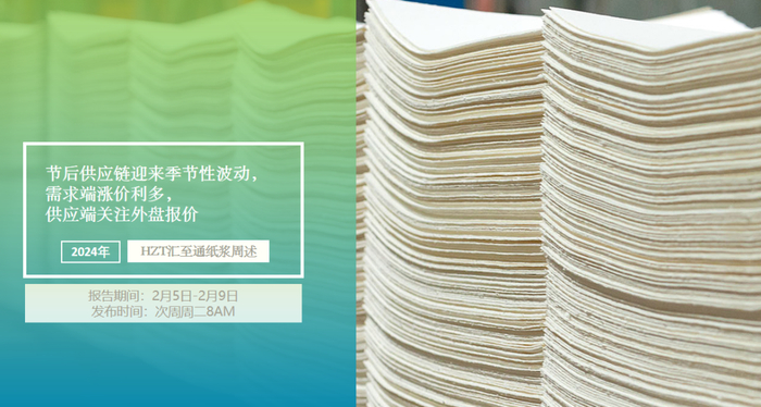 ……节后,纸浆产业链将会迎来季节性变动。节后一周~两周时间,各生产环境不断复苏,今年看,节前纸浆及下游纸张都没有在春节前迎来大规模备货,因此,春节后,在整体金融市场较为稳定的背景下,各个环节的备货容易带来纸张价格的偏涨可能。而在浆这一维度,节前,针叶浆内外倒挂,理论上对针叶浆有利多效应,但美金盘报价不断松动冲淡了利多效用。节后又到达新一轮报价周期,需观察报价结果。驱动角度,供应端的美金报价的影响方向暂时未见结果,而需求端偏向有相对确定的利多推动,因此,节后,纸浆供需偏向向上影响价格。……