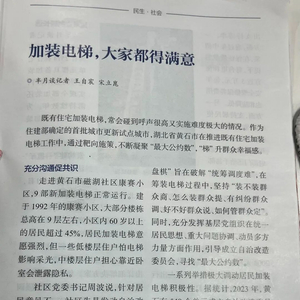 老旧小区加装电梯,是切实解决人民群众居住急难愁盼问题的一项惠民生、暖民心的好政策。该文指出,黄石在推进老旧小区电梯加装工作过程中,通过充分沟通、多方筹资、建章立制聚共识,靶向施策,不断凝聚“最大公约数”,“梯”升群众幸福感。