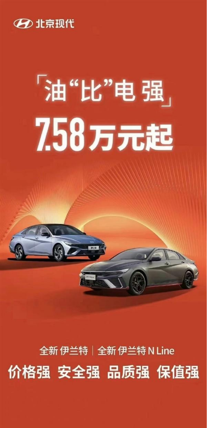 除了国产新能源品牌之外,北京现代也于19日宣布,旗下A级轿车伊兰特车型正式降价,最低7.58万元起。