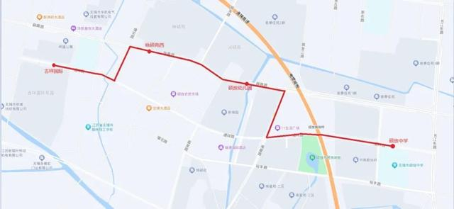 线路走向:吉祥国际花园始发,途经通祥路、墙宅路、薛典路、南星路、通祥路、硕放中学(东门)。
