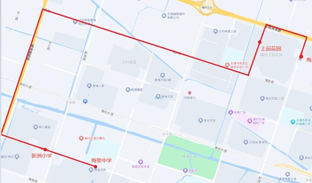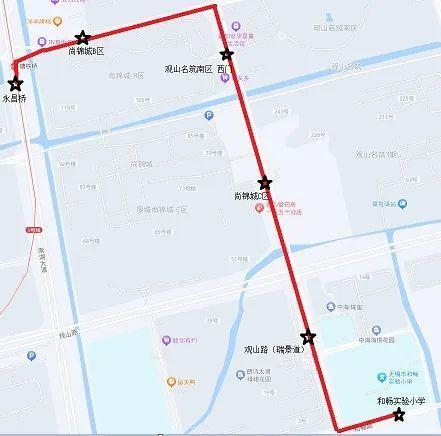 线路走向:梅里香舍始发,途经新锦路、金城路、新友路、泰伯大道、梅西路、梅苑路、梅里中学(南门)、新洲小学(北门)。