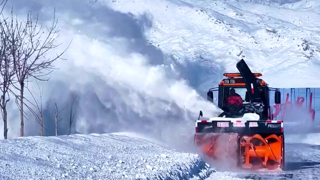 新疆富蕴县吐尔洪乡气温一度降至-52.3℃,有关部门人员积极清雪保畅通。