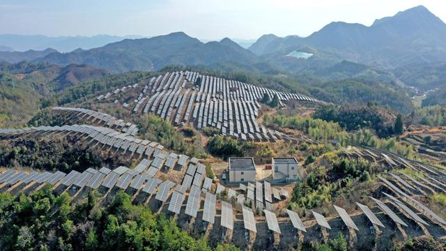 2月19日,浙江省仙居县的山坡上一排排蓝色的光伏板在阳光照射下源源不断地输送着绿色能源。仙居县通过流转荒山引进发展光伏产业,既为村集体带来了山地租金收入,又为村民提供了劳务就业,帮助山区农民增收。