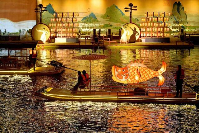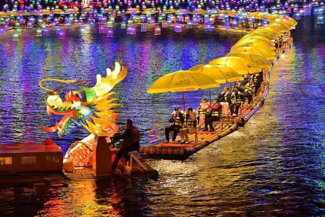 近日,湖北省宣恩县在县城贡水河上新建成的实景剧场吸引了众多游客。入夜,在声、光、电与民俗、河水、河岸建筑等紧密相融的浪漫夜色中,舟上游客既是观众也当演员,构成一幅幅“人在画中游”的美妙夜景。