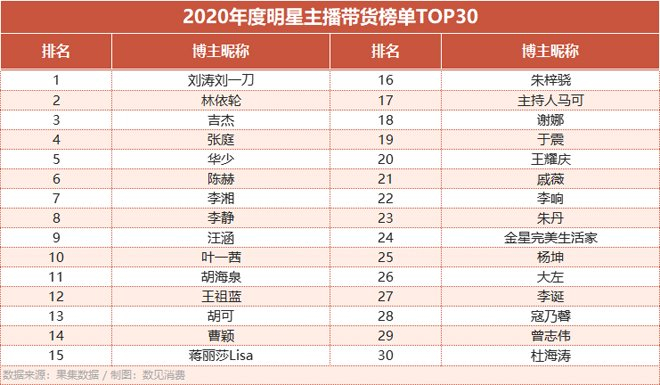 观察近期一些机构发布的2023年度直播达人榜单,基本被东方甑选、交个朋友,三只羊等各大机构霸榜,而明星主播除贾乃亮一人外,鲜有其它身影。