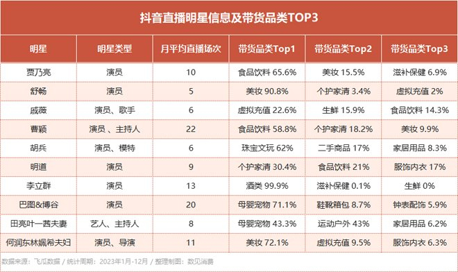相关数据统计,直到2023年的双11,仅有贾乃亮、黄圣依、戚薇、董洁、章小蕙、伊能静等少量明星活跃在各平台直播带货,而这些带货明星累积"留存"数量还不到进场总数的10%。