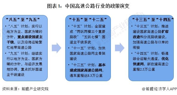 高速公路作为我国基础设施建设的重要组成部分,其发展一直受到国家的重点关注与支持。根据我国国民经济“八五”计划至“十四五”规划,国家对高速公路行业的支持政策经历了从主干线建设到国道系统建设再到交通网优化建设的变化,政策内容涉及高速公路应用联网电子化、高速线道建设、服务区建设、高速公路通行费政策等内容。