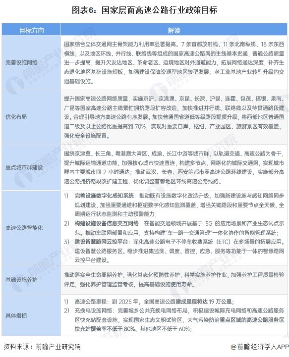 从发展目标来看,“十四五”时期,我国高速公路建设重点任务包括加强高速公路与其他运输方式的衔接和融合发展,构建快速便捷的客运服务系统和经济高效的货运物流系统,注重科技创新赋能,促进高速公路行业数字化、智能化,推动高速公路发展由传统要素驱动向更加注重创新驱动转变。