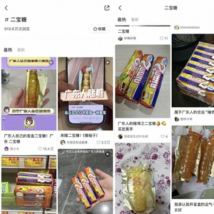 随着社交媒体的传播,这款盲盒一般的糖终于引起了外省网友的好奇,来自东北湖北湖南江苏四川等各地的网友纷纷购入了二宝糖,有的是好奇两种口味到底有什么不同,还有的人只是单纯为了体验一场酣畅淋漓的豪赌。在没有品牌官方下场的情况下,这个话题的小红书相关浏览913.8万,抖音高赞视频14.9万赞,这种现象让一些广东网友还有点反应不过来:“咦?这个糖最近怎么翻红了?”
