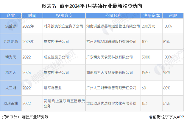 茶油产业代表性企业最新投资动向