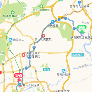 去向:贵黔总院门诊部——渔洞峡路口——轨道东风站——东风镇——乌当农机中心——新东桥——贵州师范学院——大桥寨——轨道师范学院站——南方汇通工业园——天安药业——云上村——轨道高新路站——创业路口——117地质队——轨道新添站——新添寨——新添大道北段——顺海——航天大道路口——轨道顺海站——新添生态园——冒沙井——新添大道南段——轨道茶店站——茶店——计质检所——省二医——大营坡——世纪园小区——鹿冲关公园——杨家庄——人社服务大楼——数博大道长岭南路北口——金阳远大——阳关小区——贵阳高新区管委——数博大道长岭南路(中)——黔灵山路(西)——金谷苑——贵阳一中(南)——诚信南路(南)
