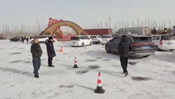 2月17日下午,高速口的车辆进入瓜州。(00:12)