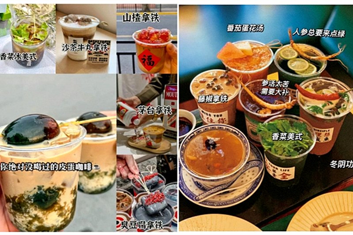 然而,国人在咖啡上施展的“创新力”却不止于此,章鱼拿铁、皮蛋咖啡、沙茶牛丸拿铁、盐水鸭特调、臭豆腐咖啡、酱油拿铁……咖啡与其他品类的融合也越来越大胆、跳脱,越是和咖啡本身关系不大的食材就越是有噱头,各种“奇葩”的特调咖啡频出,让人大开眼界。