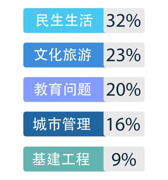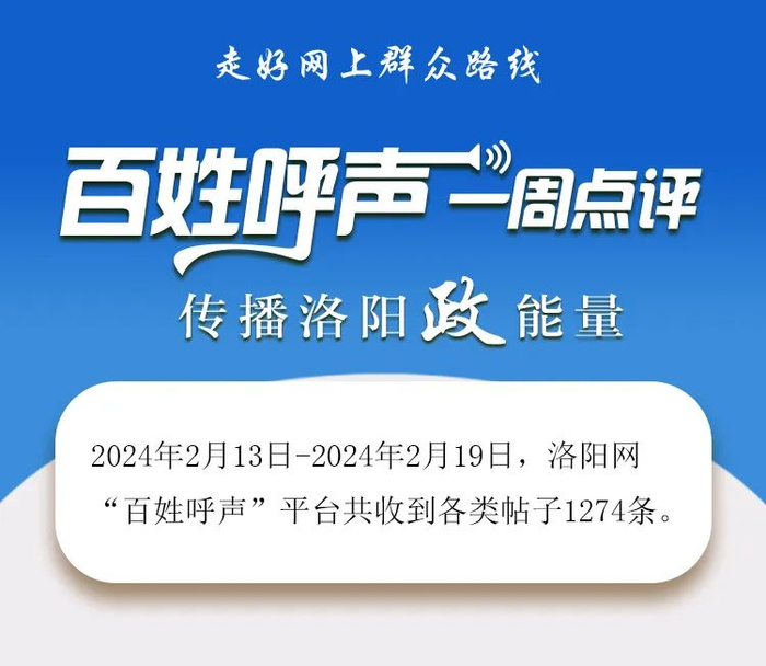 2月13日—2月19日,洛阳网“百姓呼声”平台接到的有效诉求中,民生生活问题最多,占总量的32%,排在第二的是文化旅游,占23%,教育问题占20%,城市管理占16%,基建工程占9%。