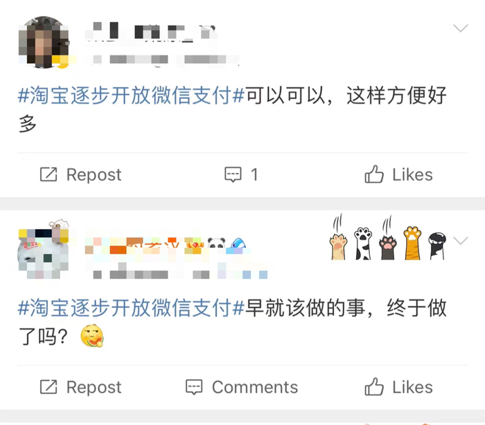 对于这次淘宝和微信的进一步互联互通,《科创板日报》记者注意到,不少网友的社交媒体上表示“非常便利”。