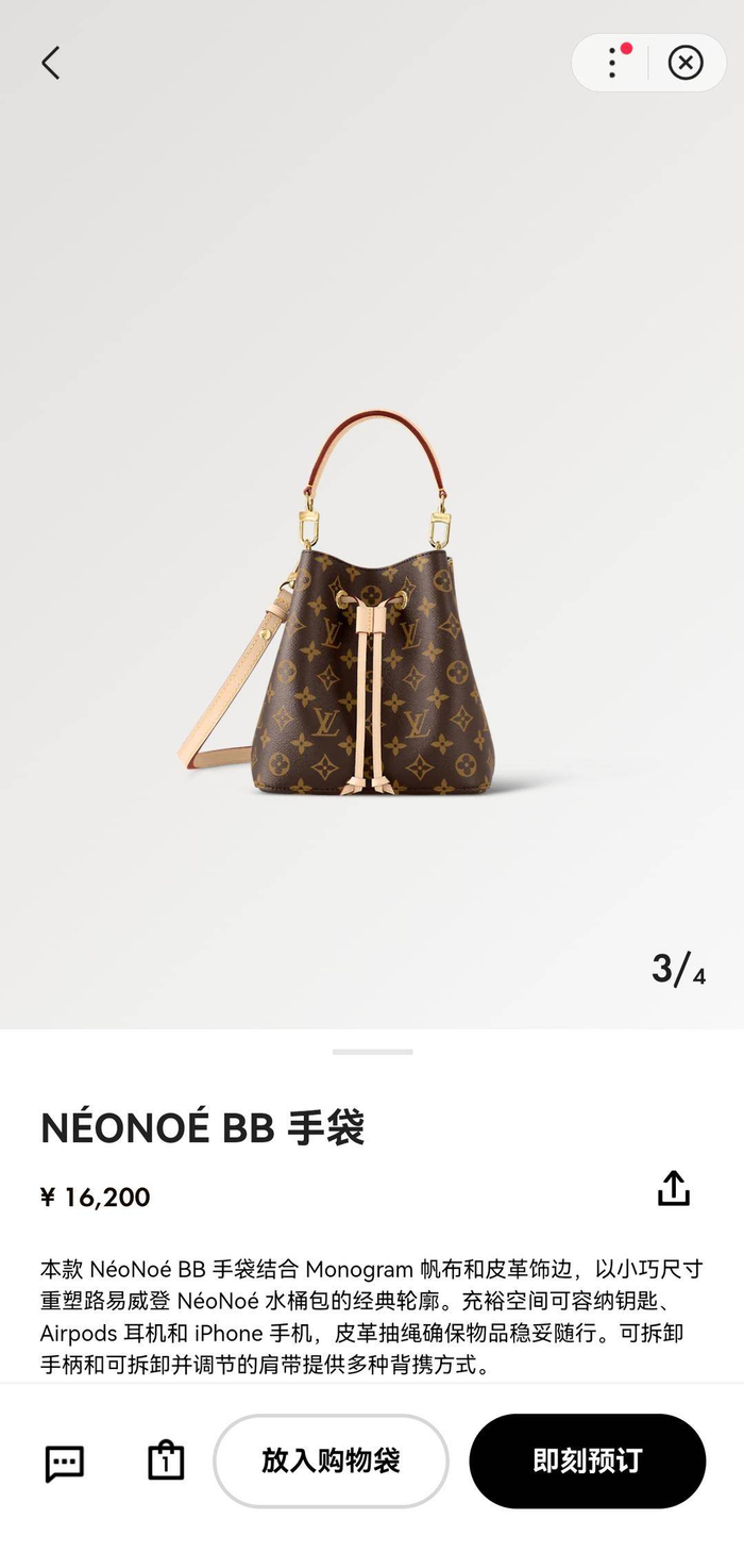LV又涨价了?近期有消息称,Louis Vuitton(路易威登,简称“LV”)于2月19日起上调部分皮具产品在中国市场的售价。对此,扬子晚报/紫牛新闻记者从LV门店工作人员处了解到,确实涨价了。产品涉及CARRYALL、“牛角包”“水桶包”等十几款,每款涨幅不一,其中“水桶包”上涨1000元。现在,入手一只LV包包的预算至少1.4万元。