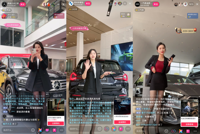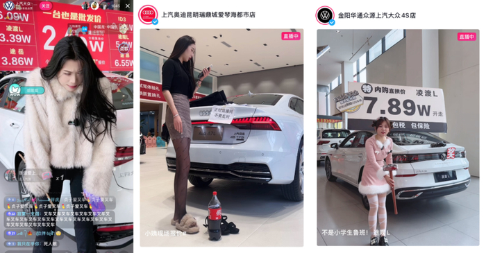 在部分品牌方看来,直播已经成为当下最有效的线上获客方式。今年年初,一汽-大众高层在沟通会上透露,旗下大众品牌经销商账号粉丝量近5000万,2023年105万辆销量中新媒体直播矩阵贡献销量达到9万台,超越了头部单一垂媒。