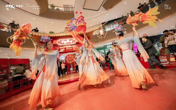 春节期间,银座集团25城百店联动的“IN祈中国年”系列活动,不仅结合原创“小灯龙”IP打造花灯主题庙会,让消费者感受浓浓的春节氛围,更有民俗巡游、国风大赏、年俗演出、非遗手作体验,打造仪式感满满的沉浸式互动。