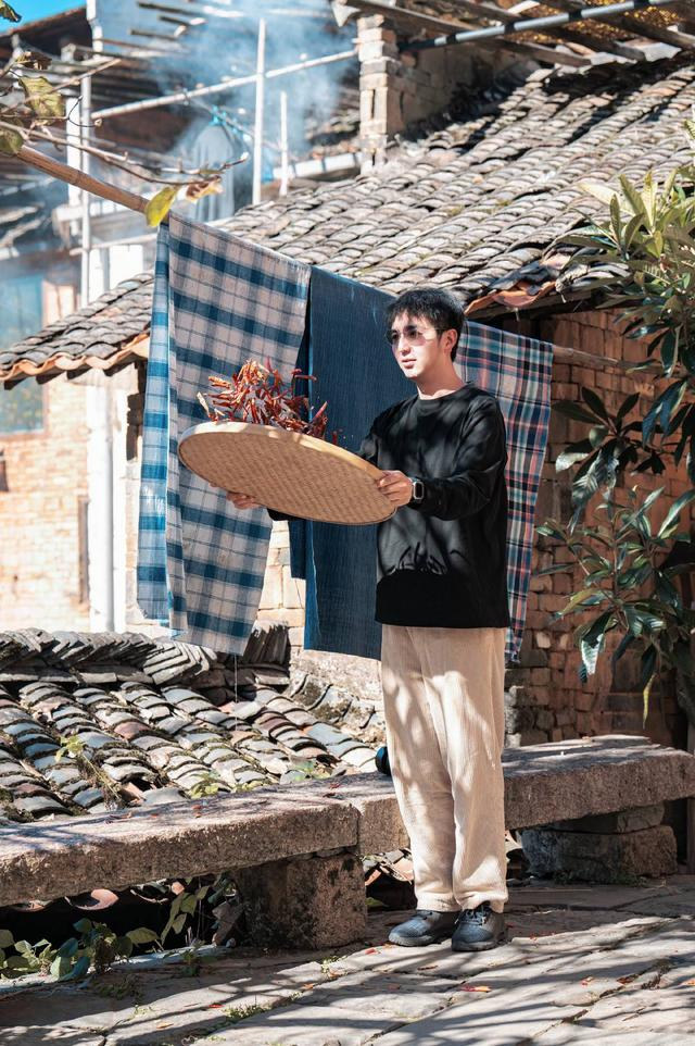缪飞正在体验婺源晒秋 图据受访者