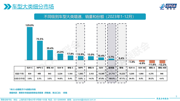 A级燃油车依靠降价在2023保住的市场份额在2024年将有失守的风险,因为降价空间已经在2023年耗尽,2024年,拿不出更大的优惠力度,在更多样的纯电A0级车以及价格跌破8万的秦Plus的夹击之下,A级合资燃油车的销量下滑会进一步加速。