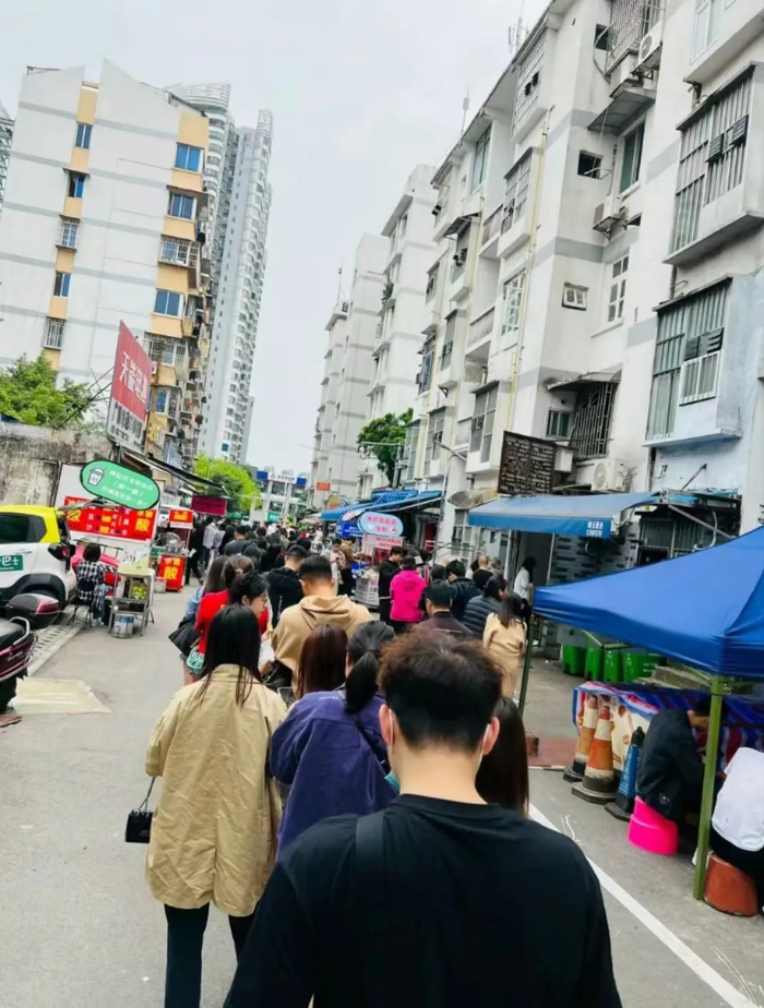 2023年上半年,每逢周末,外地游客在螺蛳粉店门口大排长龙。(图/社交媒体)