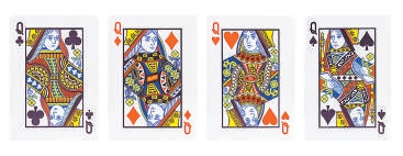 法国扑克中最早出现了黑桃、红桃、方块及梅花四个花色图案。在中世纪法国,四种花色代表当时的四种主要行业。黑桃代表军人;红桃代表牧师;梅花代表农业;方块代表工匠。每个花色的3 张人头像“花牌”J、Q、K分别为 Joke(侍卫)、Queen(王后)和King(国王)的首字母,代表着欧洲12个名声显赫的人物,那么,他们分别是谁呢?