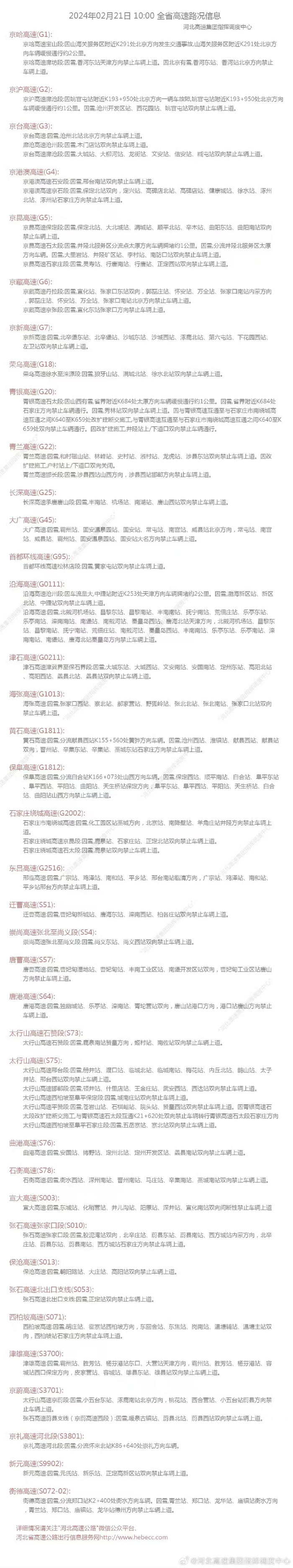 受降雪影响,张家口境内各高速路口管控。为了您的出行安全,张家口汽车站2024年2月21日全线停运!