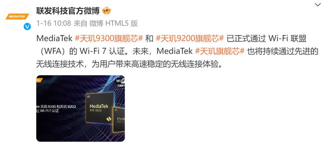 天玑9300率先通过Wi-Fi 7认证!联发科持续拓展全球Wi-Fi 7生态系统