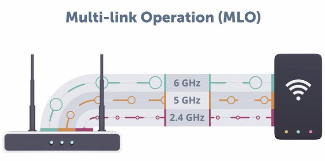 作为Wi-Fi 7的核心技术,MLO多链路技术以及确定性延迟技术,可聚合2.4GHz、5.1GHz、5.8GHz以及6GHz四个频段,支持多个频段/信道同时传输,通过聚合实现更高速度,并且大幅减少多终端重负载下延迟增加、稳定性下降的问题。此外,512压缩快(Compressed block-ack)技术能够提高效率并减少开销;多RU对应单STA“打孔”技术,可以提高频谱资源调度灵活性,从而避开具有干扰的频段,且依旧能保持较高频宽;对上行链路的优化,可适应对延迟敏感的数据流,并满足QoS要求。