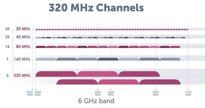 Wi-Fi 7相比Wi-Fi 6/6E有着多项进化。最高320MHz的信道宽度比上代增加一倍;4096-QAM的引入,相比此前的1024-QAM更是大幅提高速度上限,因此,Wi-Fi 7理论速率由9.6Gbps大幅增至36Gbps。