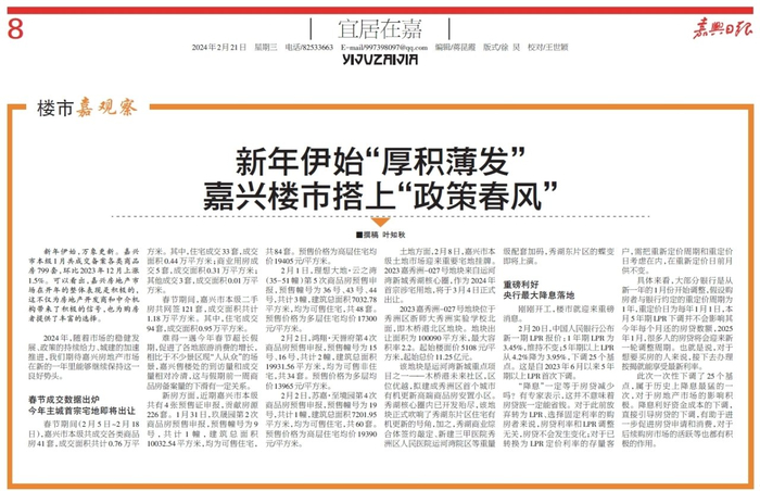 楼市嘉观察 | 新年伊始“厚积薄发” 嘉兴楼市搭上“政策春风”