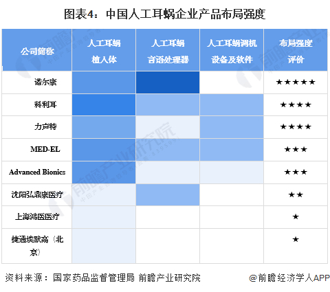 3、中国人工耳蜗行业产品布局