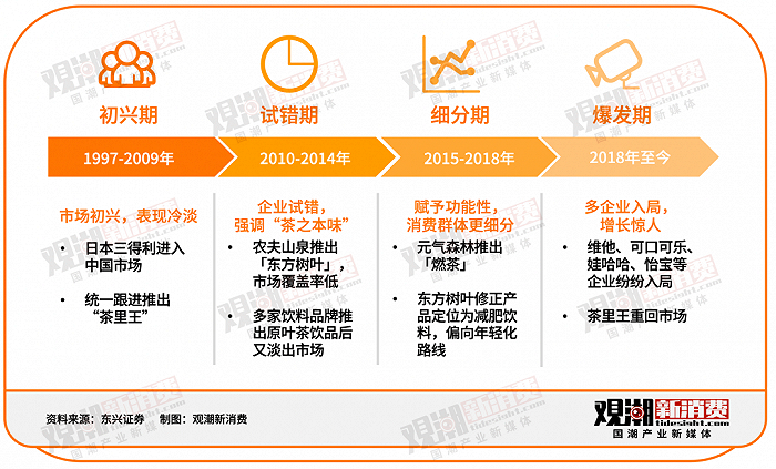 从1997年风头正盛的三得利进入中国市场,到东方树叶迎来属于它的时代之前,无糖茶在中国的发展经历了很长一段时间的沉寂期。