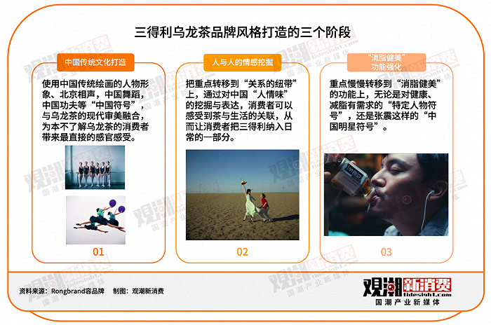 彼时的日本十分流行中国饮食文化,人们对于中国茶叶充满好奇。捕捉到这一信息的三得利迅速奔赴中国福建采茶,并在产品包装上印有「使用福建省茶叶」字样,用“中国茶”概念让无糖乌龙茶流入日本消费者的日常生活。