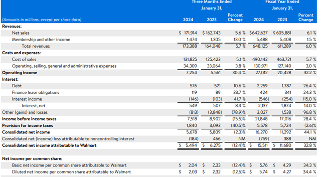 2月20日周四,沃尔玛公布了2024财年Q4业绩,公司营收1733.9亿美元,超出市场预期1703.5亿美元,较上年同期的1640.5亿美元增长5.7%。