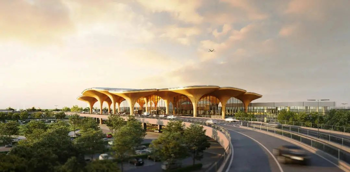 当前,航站楼A区的土建结构即将完成结顶,顶部的花瓣区域也将完成基础搭建。目标是到2024年4月完成整个航站楼的土建封顶,6月到7月完成钢结构施工。
