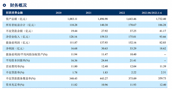 报告期内,招联金融实现净利润 16.68 亿元、30.63 亿元、33.29亿元及18.62 亿元,逐年增长;股东权益由2020 年末的110.28亿元增加到 2023 年 6月末的186.28 亿元。