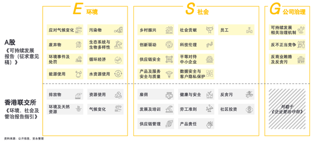 港交所《ESG报告指引》对于发行人识别及披露反映发行人对环境及社会具有重大影响的事宜及关键绩效指标。《征求意见稿》除要求披露对环境和社会的影响外,还强调披露主体的生产运营、内部管理、对外投资、社会活动等对经济是否存在重大影响。