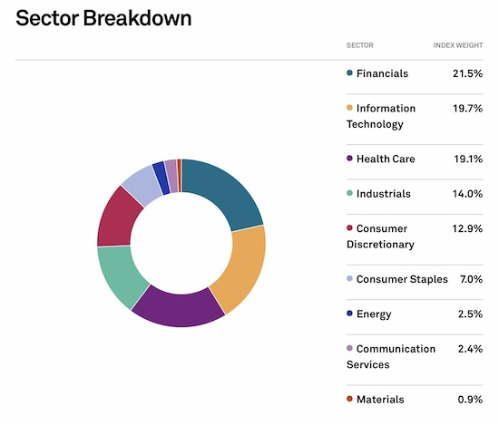 与此相比,信息技术板块以29.5%的比重占据标普500指数首位,金融和医疗卫生紧随其后,占比分别为13.1%和12.8%。