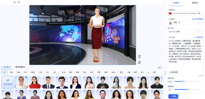《每日经济新闻》记者在官网体验Kreado AI后发现,平台主打数字人口播功能,即输入文本后可选择背景、人物形象等自动生成口播视频,动作神态较为生动,但与目前市场上相关竞品并未拉开差距。
