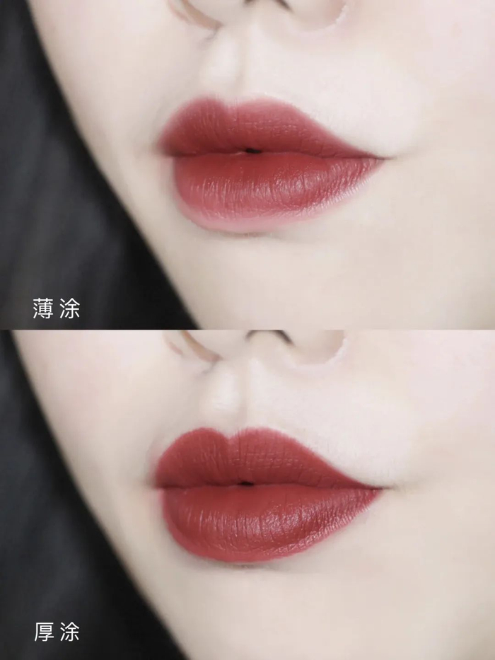 厚涂则高级感一下子就出来了,显白一级棒,气场全开!不挑肤色,黄黑皮的姐妹都能hold得住,能让整个人更出彩!